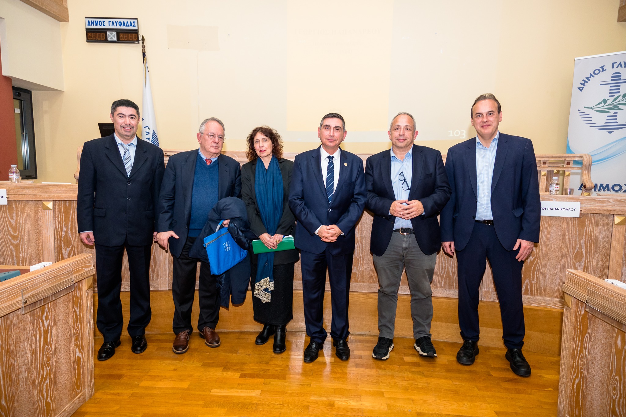 Την εκδήλωση χαιρέτισε η Πρόεδρος του Δημοτικού Συμβουλίου Γλυφάδας κα Δαφνούλα – Χαρίση Μπίλια, ενώ παρέμβαση έκανε, περιγράφοντας χαρακτηριστικά ιστορικά γεγονότα από τη ζωή του Γεωργίου Παπανδρέου, η Υφυπουργός Μετανάστευσης και Ασύλου κα Σοφία Βούλτεψη.