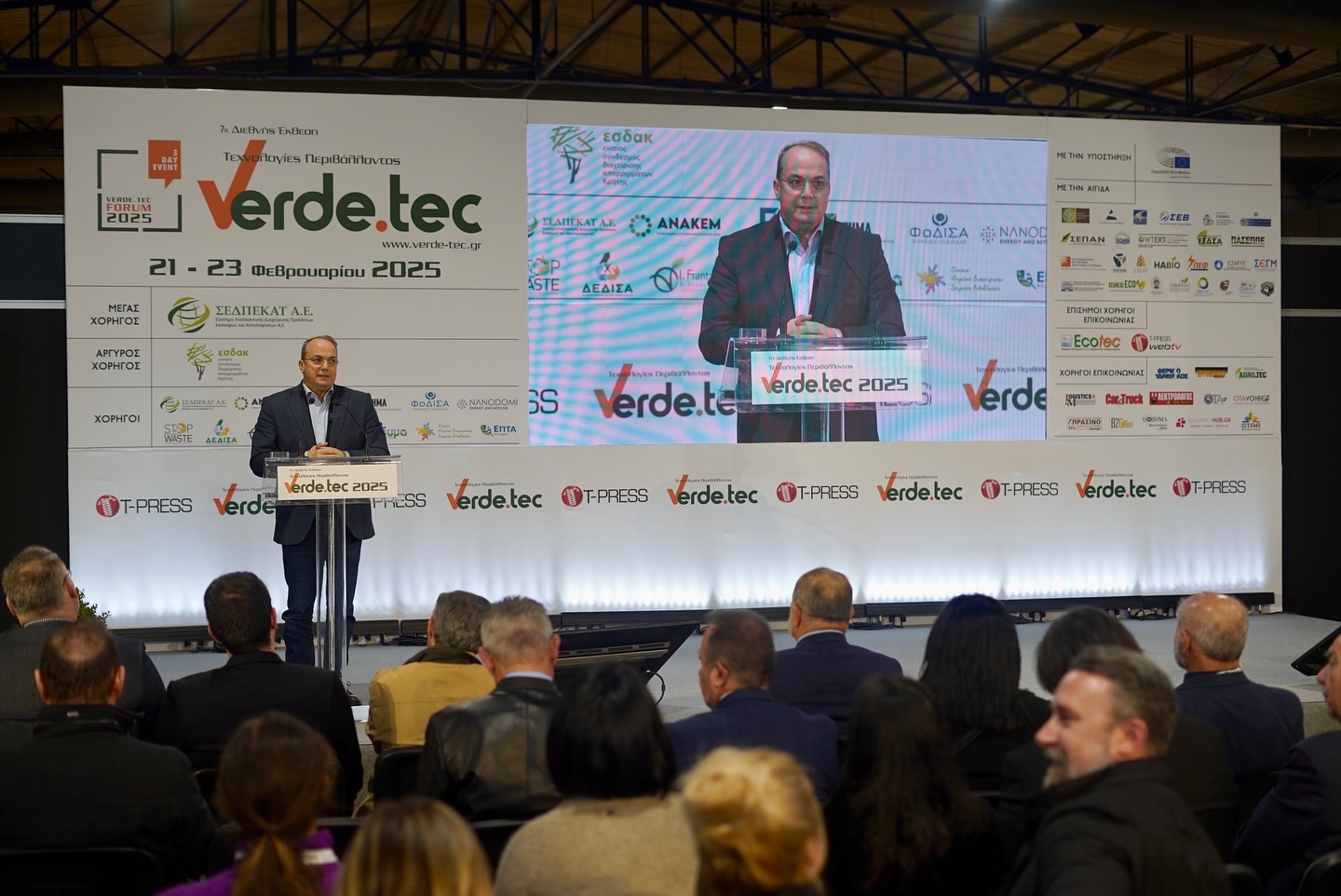 «Σήμερα είχα τη χαρά από την θέση του ‘Α Αντιπροέδρου της ΚΕΔΕ να εγκαινιάσω την έκθεση “Verde tec 2025” που εστιάζει στις τεχνολογίες περιβάλλοντος και τις περιβαλλοντικές προκλήσεις που καλούμαστε να αντιμετωπίσουμε ως κοινωνία και ως τοπική αυτοδιοίκηση.