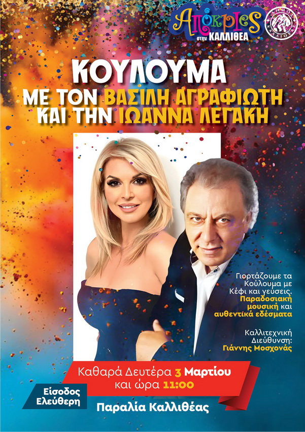 Ο Δήμος Καλλιθέας προσκαλεί όλους τους πολίτες να γιορτάσουν μαζί τα Κούλουμα, την Καθαρά Δευτέρα, στις 3 Μαρτίου και ώρα 11.00 π.μ., στην Πλατεία Νερού, με μια μοναδική παραδοσιακή εκδήλωση γεμάτη μουσική, γεύσεις και κέφι.