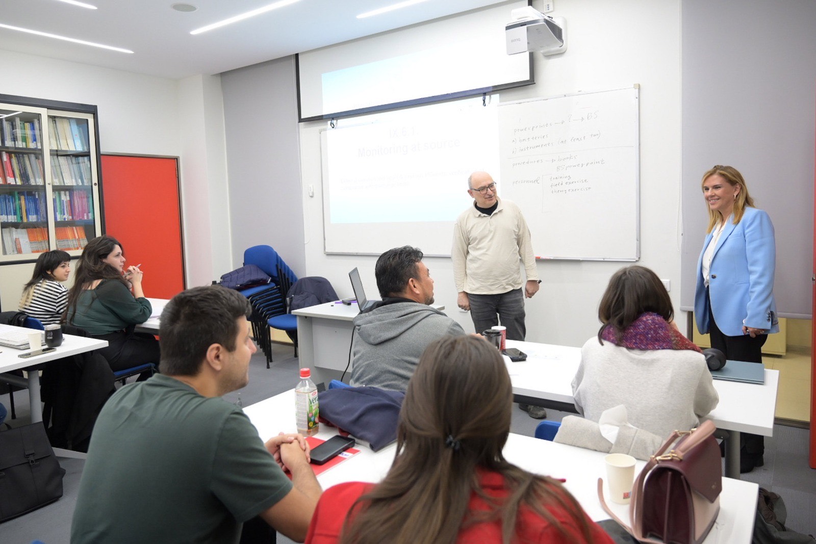 Τέλος, η Υφυπουργός Ανάπτυξης παραβρέθηκε στην αίθουσα διδασκαλίας, την ώρα του μαθήματος του αγγλόφωνου διεθνούς μεταπτυχιακού προγράμματος που παρακολουθούν αυτή την περίοδο νέοι επιστήμονες-επαγγελματικά στελέχη από όλα τα μέρη του κόσμου.