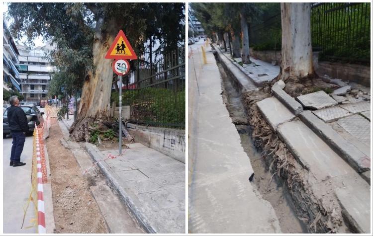 Στο πλαίσιο των εργασιών κατασκευής υπογείου δικτύου από τη ΔΕΔΔΗΕ στις οδούς Χατζή, Υδάσπου και Ταξίλου, έξι μεγάλοι ευκάλυπτοι στην οδό Ταξίλου έχουν υποστεί σοβαρές ριζικές βλάβες, όπως διαπιστώθηκε και από την επιτόπια αυτοψία από την Υπηρεσία Πρασίνου του Δήμου.