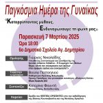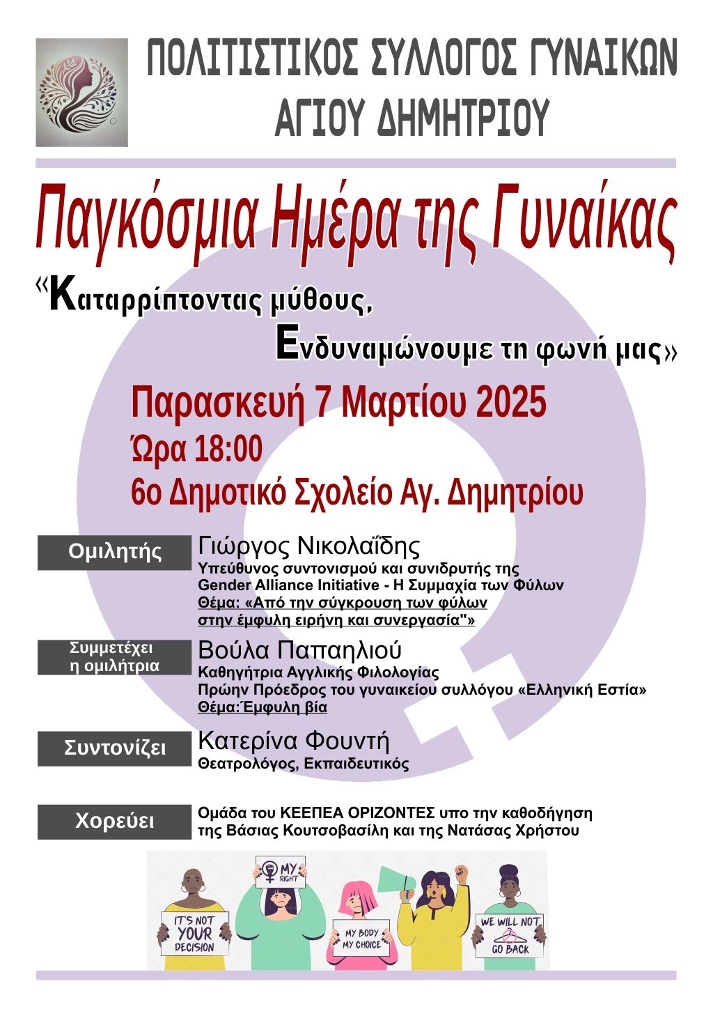 Ο Πολιτιστικός Σύλλογος Γυναικών Αγίου Δημητρίου, με αφορμή την Παγκόσμια Ημέρα της Γυναίκας στις 8 Μαρτίου, οργανώνει δύο δράσεις.