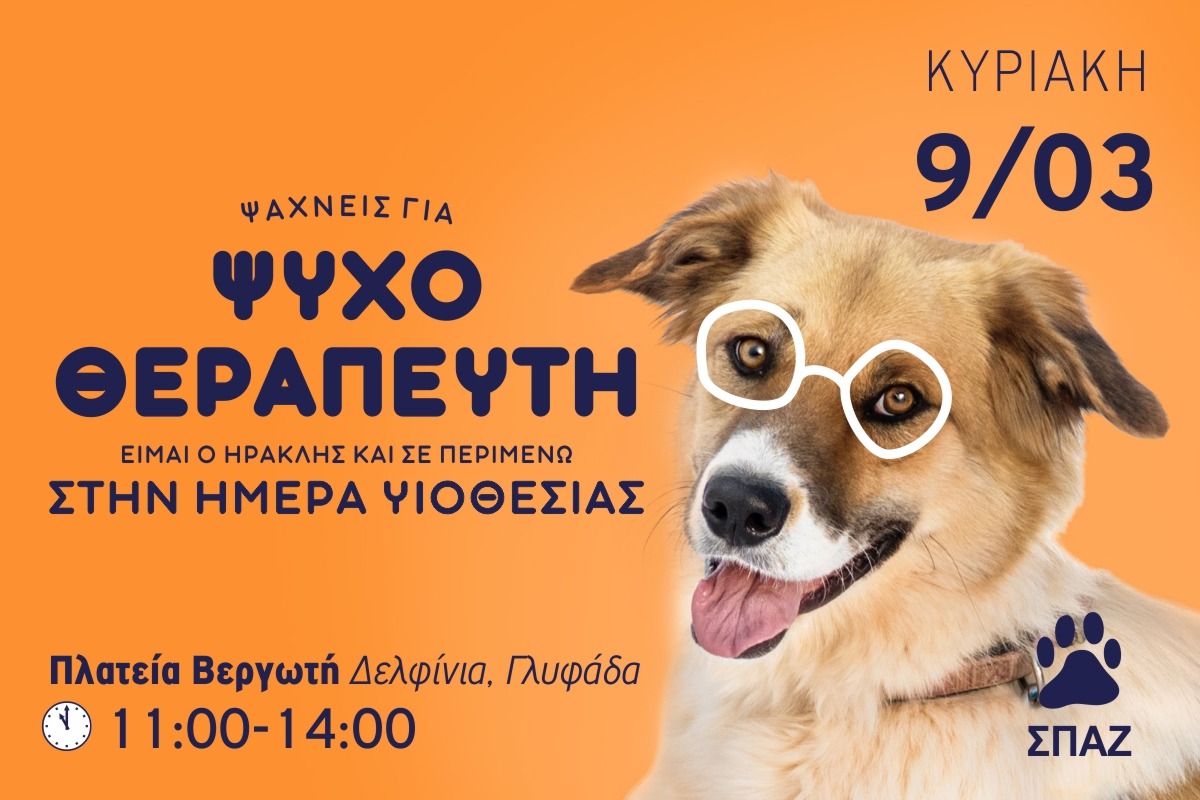 Ο Σύλλογος Προστασίας Αδέσποτων Ζώων οργανώνει ημέρα υιοθεσίας την Κυριακή 9 Μαρτίου, από τις 11 μέχρι τις 2, στην Πλατεία Βεργωτή του Δήμου Γλυφάδας.