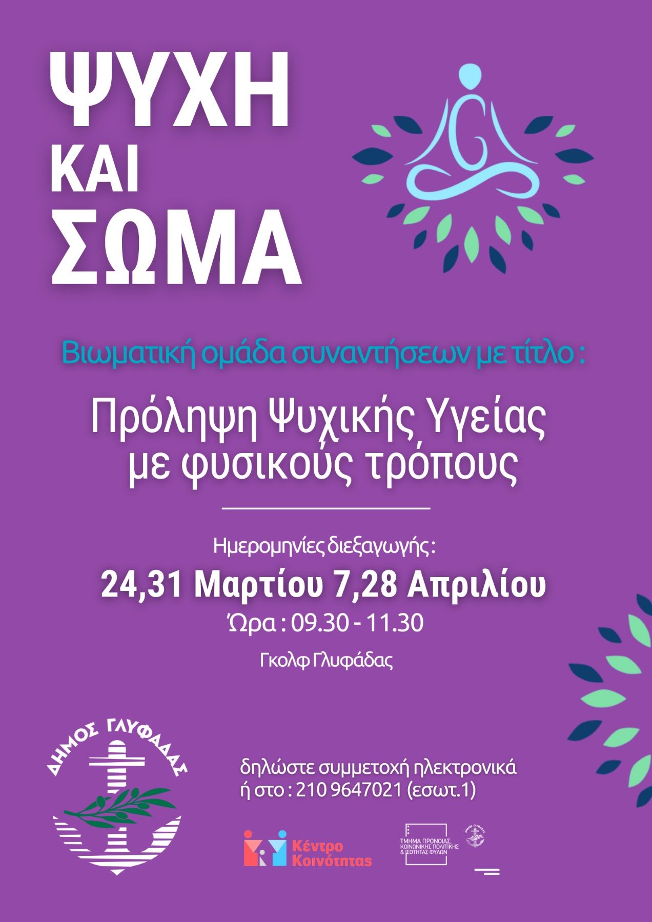 Το πρόγραμμα παρέμβασης με φυσικούς τρόπους για την περιφρούρηση της ψυχικής υγείας, που θέτει σε εφαρμογή ο Δήμος Γλυφάδας με πρωτοβουλία του Δημάρχου Γιώργου Παπανικολάου, συνεχίζεται και την Άνοιξη.
