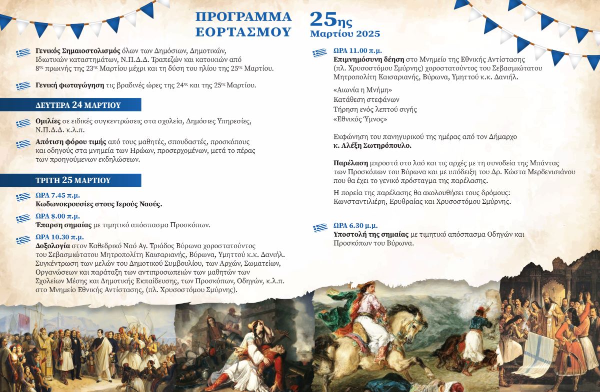 Αναλυτικότερα, το πρόγραμμα εορτασμού της 25ης Μαρτίου 2025: