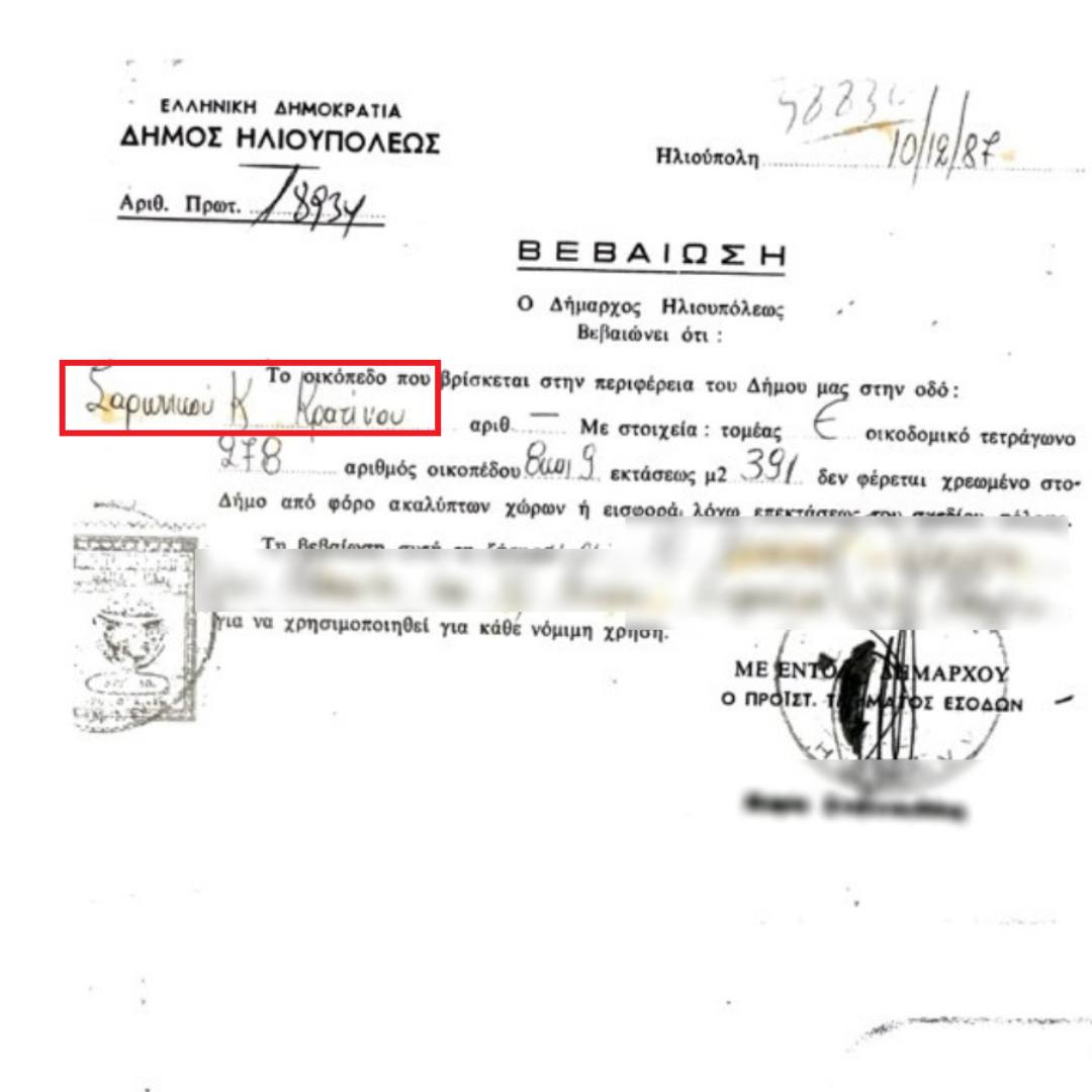Ειδικότερα, μετά από μια σειρά συμβολαιογραφικών πράξεων των ιδιοκτητών, οι τελευταίοι έλαβαν από το 1987 έγγραφο από τον Δήμο Ηλιούπολης για την μη οφειλή φόρου ακαλύπτων χώρων ή εισφοράς λόγω επεκτάσεως της πόλης, ενώ το έτος 1997, οι ιδιοκτήτες υπέβαλαν την με αριθμό 33847/1996 αίτηση προς το Δημοτικό Συμβούλιο της Ηλιούπολης, στην οποία αναφέρουν ρητά ότι είναι ιδιοκτήτες του ως άνω ακινήτου και ότι σε προφορική συνεννόηση με τον Δημοτικό Σύμβουλο κ. Προβιά ζήτησαν την ανταλλαγή του μέσω της Κτηματικής Υπηρεσίας του Δημοσίου με άλλο ακίνητο ίσης οικοδομικής εκμετάλλευσης στα όρια του Δήμου Ηλιούπολης ή όπου άλλου εντός της Αττικής έχει ακίνητο η ΚΕΔ. Στις 28-1-1997 το Δημοτικό Συμβούλιο αποφάσισε μετά από εισήγηση του τότε Αντιδημάρχου Τεχνικών Υπηρεσιών ΟΜΟΦΩΝΑ να εξουσιοδοτήσουν τον τότε Δήμαρχο Θεόδωρο Γεωργάκη να προβεί στην ανταλλαγή του οικοπέδου με άλλο οικόπεδο.