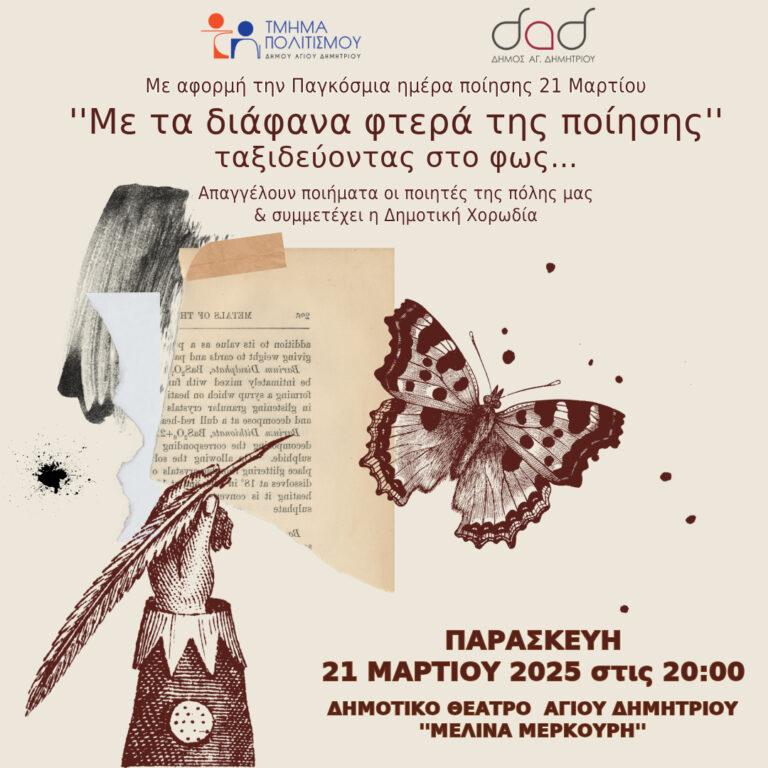 Η εκδήλωση θα λάβει χώρο την Παρασκευή 21η Μαρτίου 2025 & ώρα 20.00, στο Δημοτικό Θέατρο “Μελίνα Μερκούρη”.
