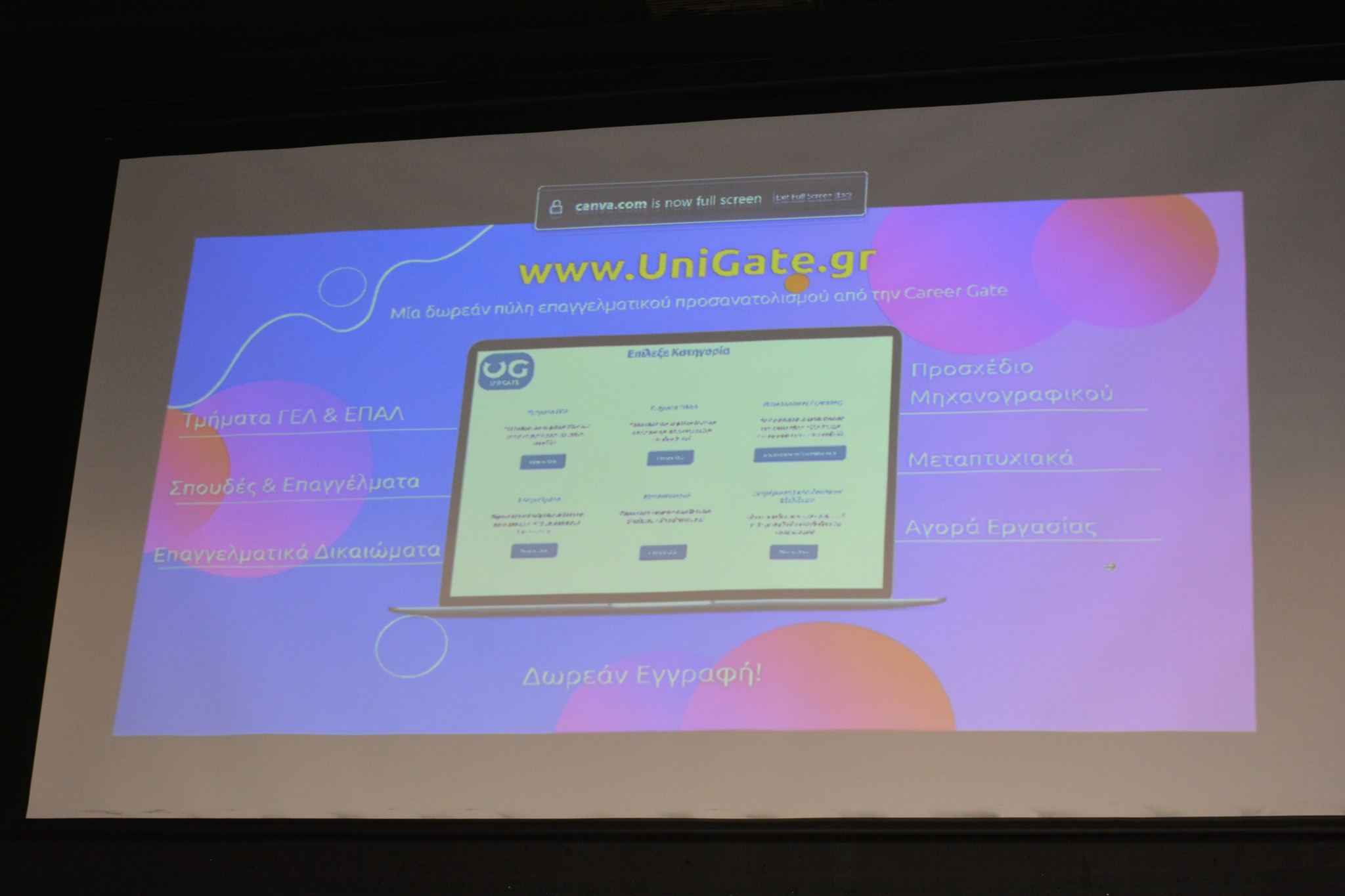 Την πρώτη ημέρα της ημερίδας, στο Θέατρο Ιζόλα, παρευρέθηκαν και συμμετείχαν πάνω από 400 μαθητές, οι οποίοι είχαν την ευκαιρία να ενημερωθούν για τις σύγχρονες προοπτικές σπουδών και καριέρας, καθώς και να αποκτήσουν πολύτιμες πληροφορίες για την αγορά εργασίας και τις δεξιότητες του μέλλοντος.