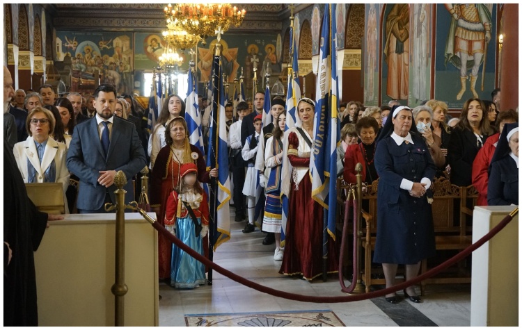 Εκεί αφού πραγματοποιήθηκε η Επιμνημόσυνη Δέηση από τους Πατέρες της Εκκλησίας, ο Δήμαρχος της πόλης κ. Ευστάθιος Ψυρρόπουλος εκφώνησε τον πανηγυρικό της ημέρας, όπου ξεκίνησε τον λόγο του αναδεικνύοντας τον σημαντικό ρόλο που διαδραμάτισε η Εκκλησία για την Επανάσταση, πλάι στους αγωνιστές.