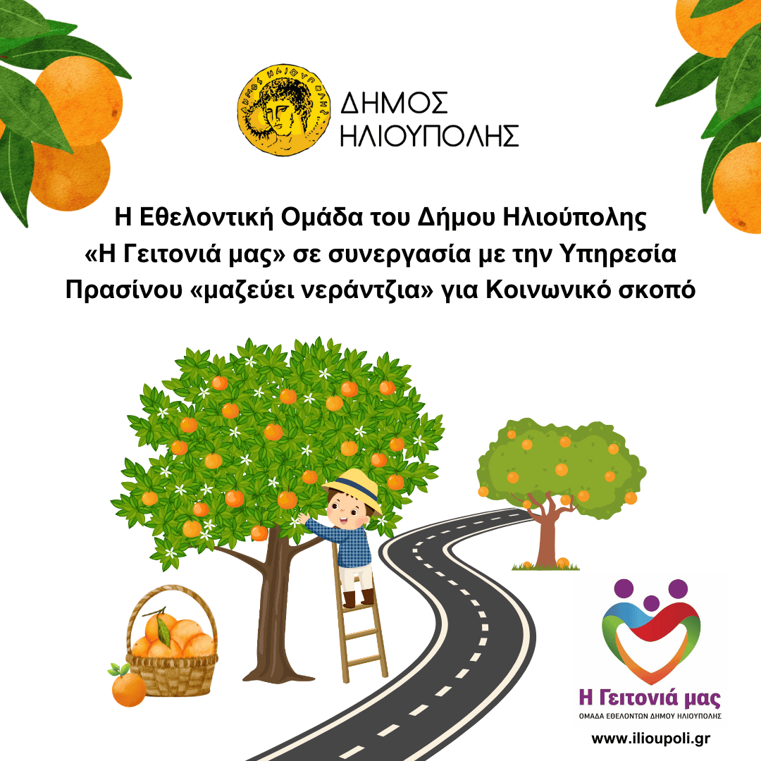 Μία σημαντική πρωτοβουλία θα λάβει χώρα την Κυριακή 30 Μαρτίου 2025 από την Εθελοντική Ομάδα του Δήμου Ηλιούπολης «η Γειτονιά μας» και την υπηρεσία Πρασίνου με την υποστήριξη δημοτών και κατοίκων, προκειμένου να συγκεντρωθούν μεγάλες ποσότητες νεραντζιών.