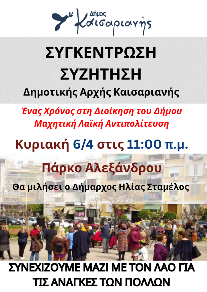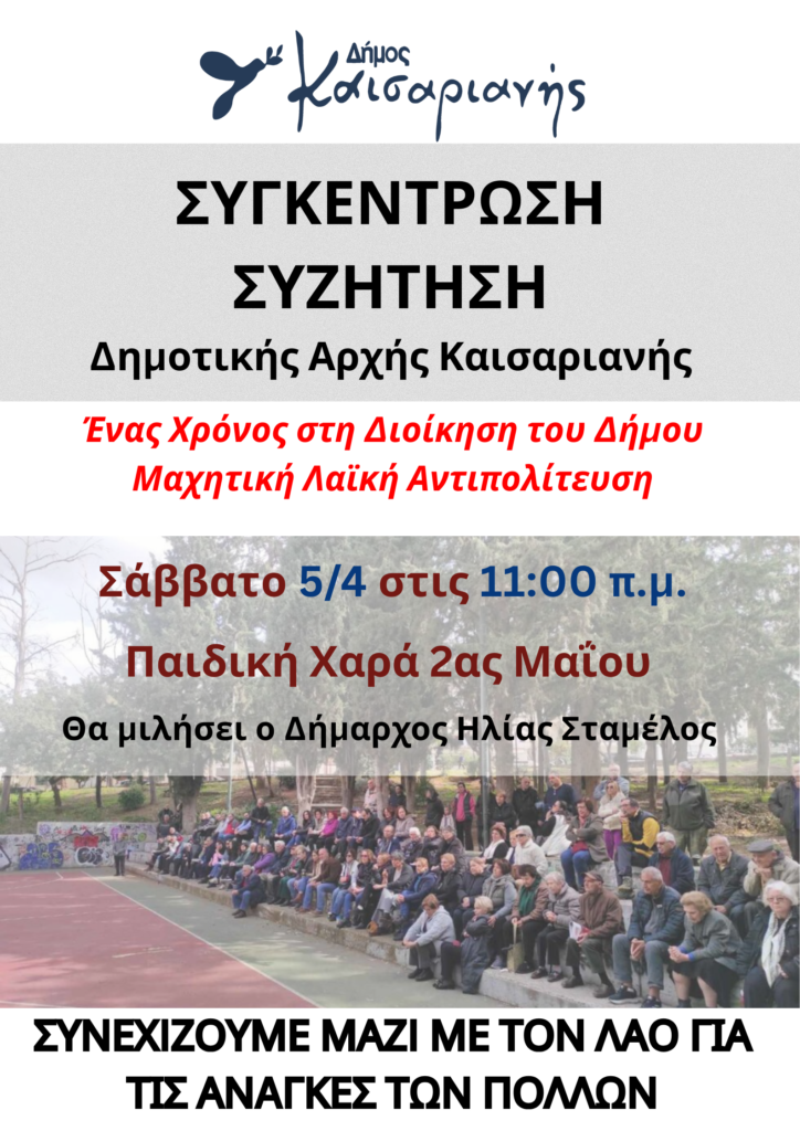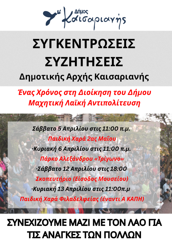 Διαβάστε επίσης: Λαϊκή Συσπείρωση Καισαριανής: «Ένας χρόνος στη Διοίκηση – Ανοιχτές συγκεντρώσεις»