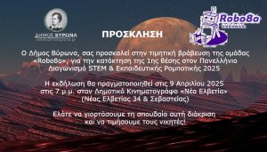 Ο Δήμος Βύρωνα για να τιμήσει την επιτυχία τους, θα πραγματοποιήσει τιμητική εκδήλωση βράβευσης της ομάδας «Robo8o».