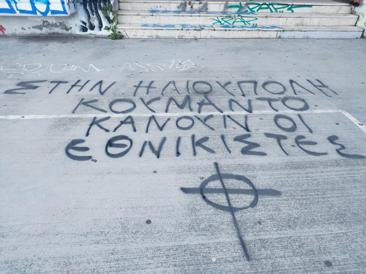 «Η Λαϊκή Συσπείρωση Ηλιούπολης καταδικάζει τα φασιστικά συνθήματα που βρόμισαν αυτές τις μέρες το ΕΠΑΛ Ηλιούπολης, όπως και το λύκειο στον Καρέα.