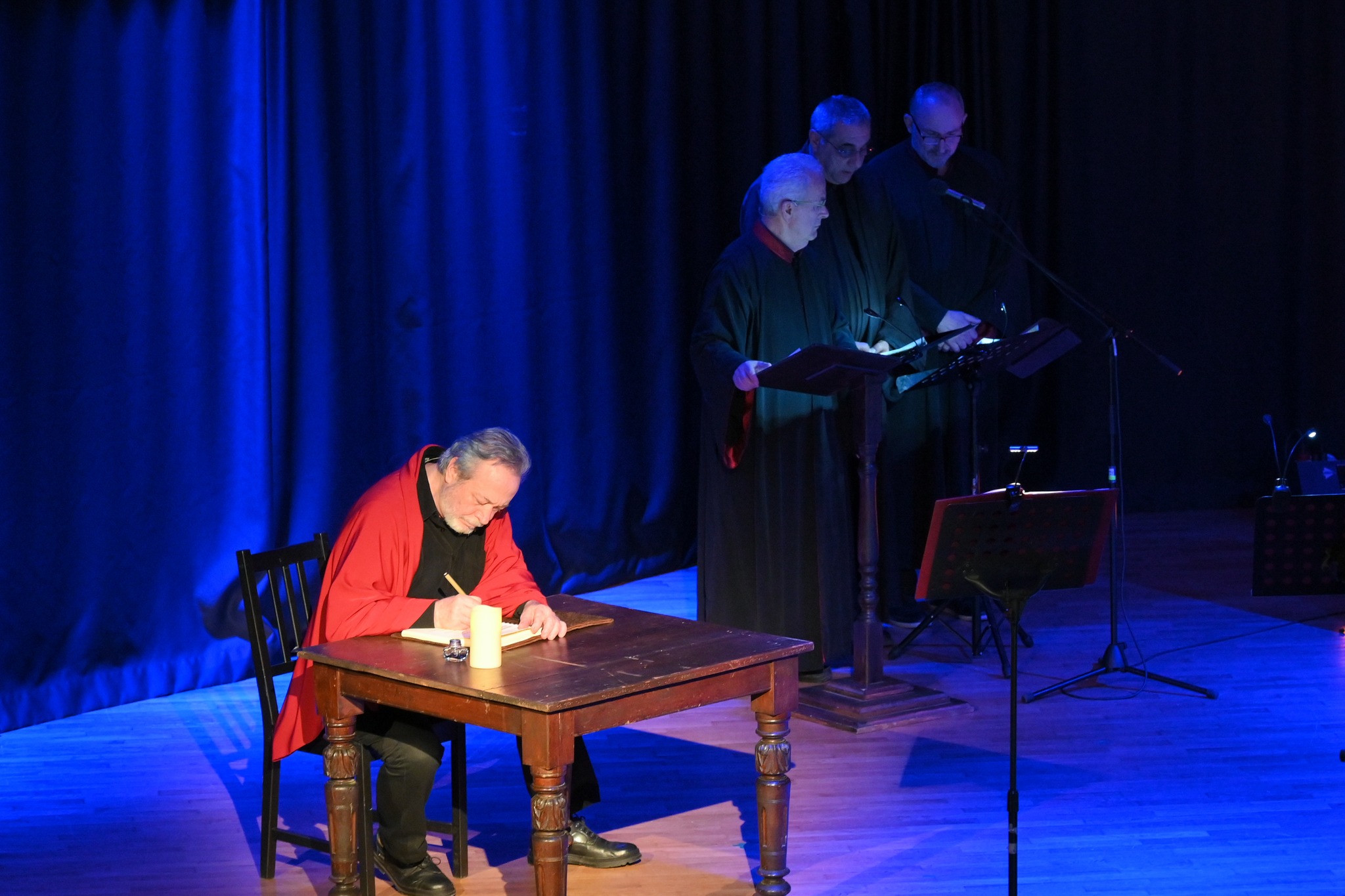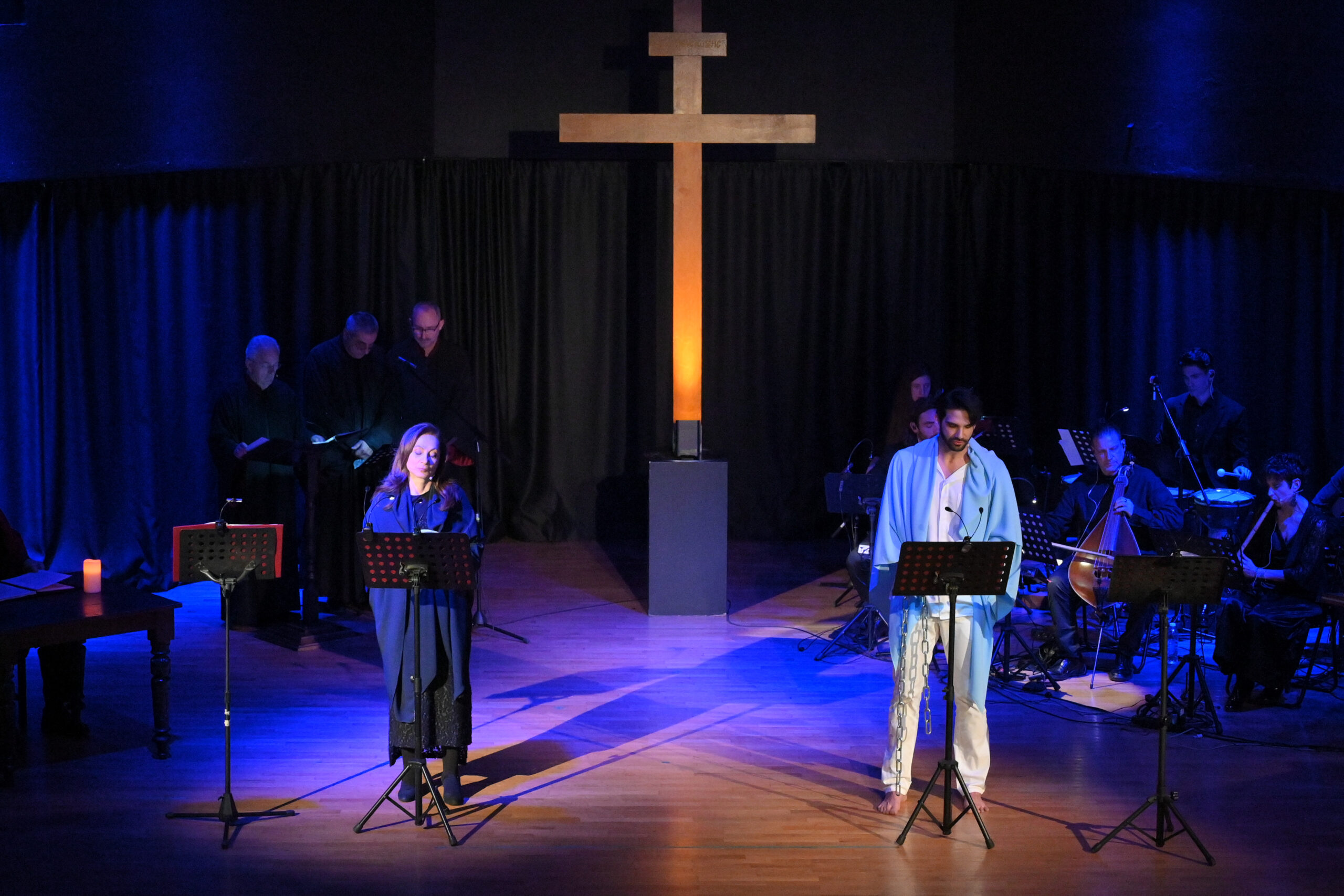 Τη Μεγάλη Τετάρτη 16 Απριλίου, το κοινό παρακολούθησε την παράσταση «Το Θείο Δράμα», ένα βυζαντινό δράμα σε μορφή ορατορίου, εμπνευσμένο από τους ύμνους του Ρωμανού του Μελωδού και αφιερωμένο στα Πάθη του Χριστού.