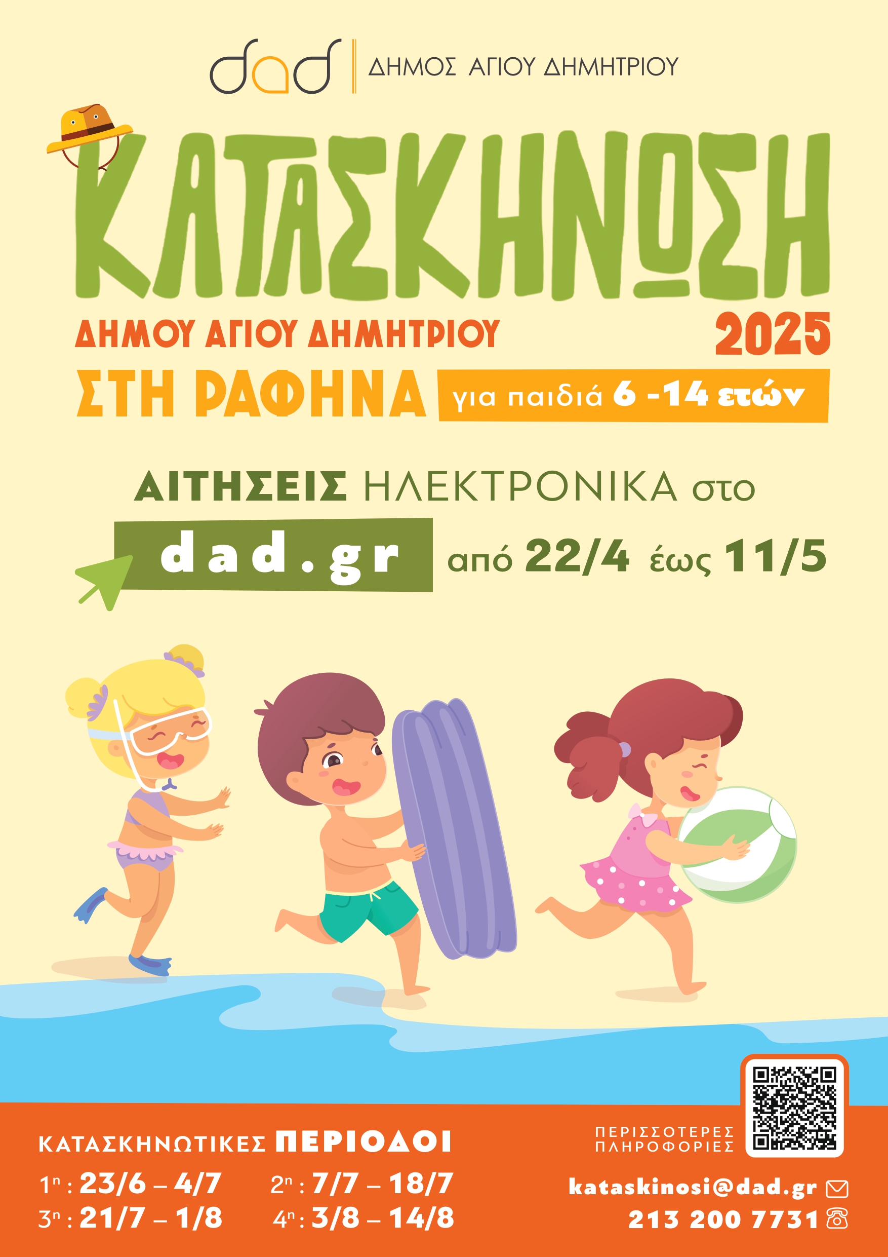 Η Δημοτική Κατασκήνωση του Δήμου Αγίου Δημητρίου στη Ραφήνα ετοιμάζεται και φέτος να ανοίξει τις πύλες της και να υποδεχτεί τους μικρούς φίλους για ένα αξέχαστο κατασκηνωτικό καλοκαίρι!