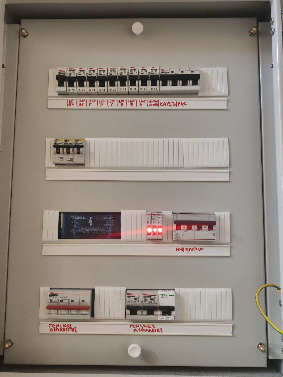 • Έγινε επισκευή σε τέσσερις (4) υποπίνακες και αντικαταστάθηκε ο κεντρικός ηλεκτρολογικός πίνακας