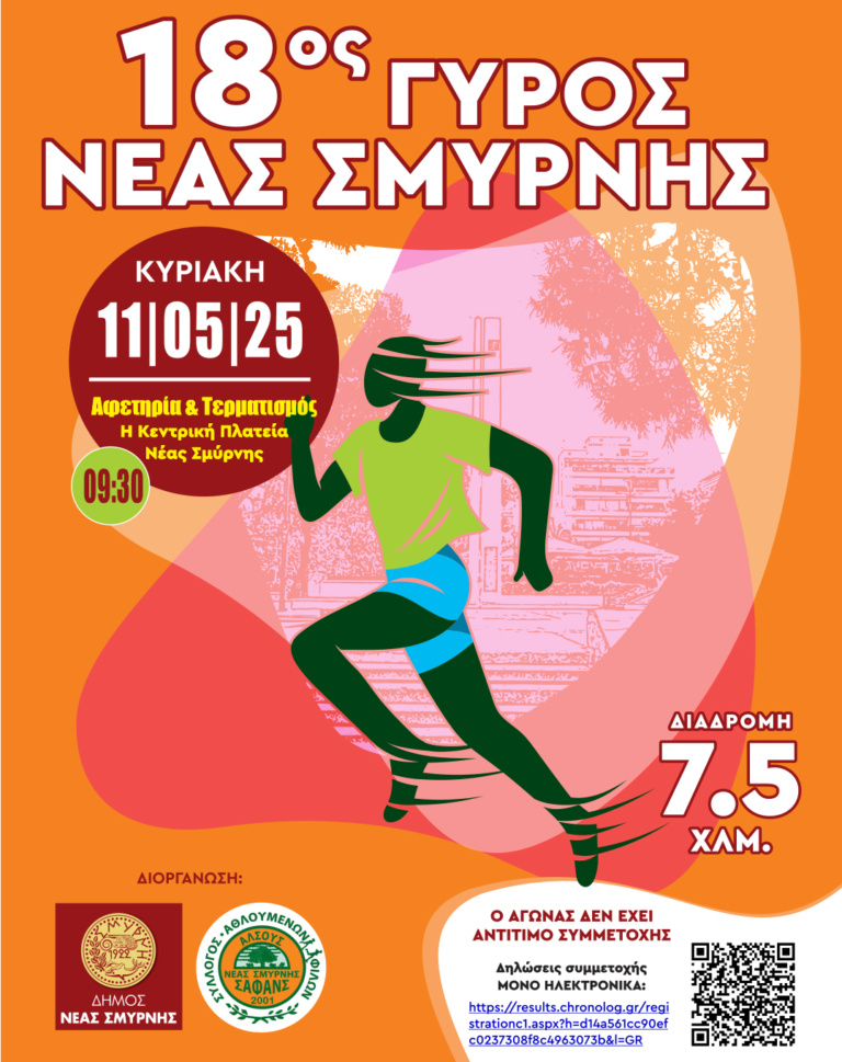 Ο 18ος Γύρος Νέας Σμύρνης πραγματοποιείται την Κυριακή 11 Μαΐου στις 09:30 το πρωί.