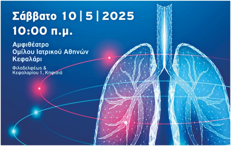 Το Ιατρικό Κέντρο Αθηνών, υπό την αιγίδα του Δήμου Κηφισιάς, διοργανώνει το Σάββατο 10 Μαΐου 2025, στις 10:00 π.μ., Πνευμονολογική – Θωρακοχειρουργική Ημερίδα με θέμα: «Καρκίνος Πνεύμονα: Πρώιμη διάγνωση, εξατομικευμένη διερεύνηση και αντιμετώπιση».