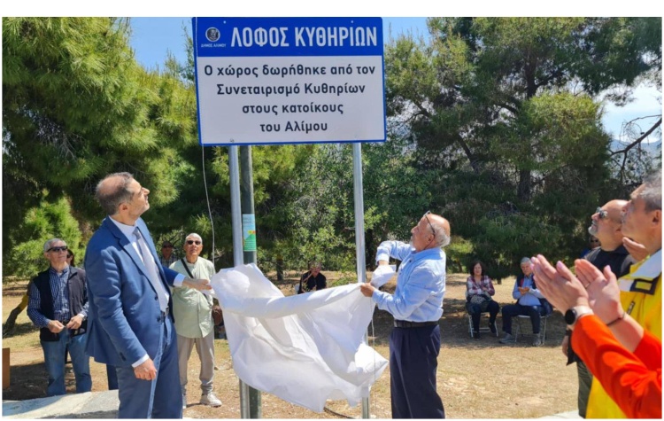 Και ολοκλήρωσε την ομιλία του, αναπτύσσοντας τα σχέδιά του για το μέλλον του λόφου, ανακοινώνοντας ότι έχει κατατεθεί μελέτη από τον Δήμο Αλίμου στο Πράσινο Ταμείο για την αναβάθμιση του Λόφου Κυθηρίων. Ένα έργο προϋπολογισμού πάνω από 500.000 ευρώ.