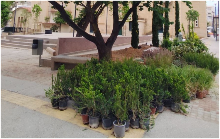 - Όσον αφορά στα δέντρα, 15 διαφορετικά είδη και συνολικά 31 τεμάχια (12 αείφυλλα –κυπαρίσσι, μανώλια, χαρουπιά, καμφορά- και 19 φυλλοβόλα –πλατάνι, ακακία Κων/λεως, κουτσουπιά, μελικοκιά, ροδιά).