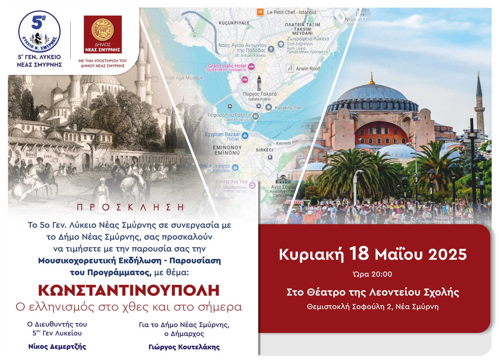 Ένα μεγάλο αφιέρωμα στον ελληνισμό της Κωνσταντινούπολης με θέμα «Κωνσταντινούπολη: Ο ελληνισμός στο χθες και το σήμερα» διοργανώνει ο Δήμος Νέας Σμύρνης και το 5ο Γενικό Λύκειο Νέας Σμύρνης.