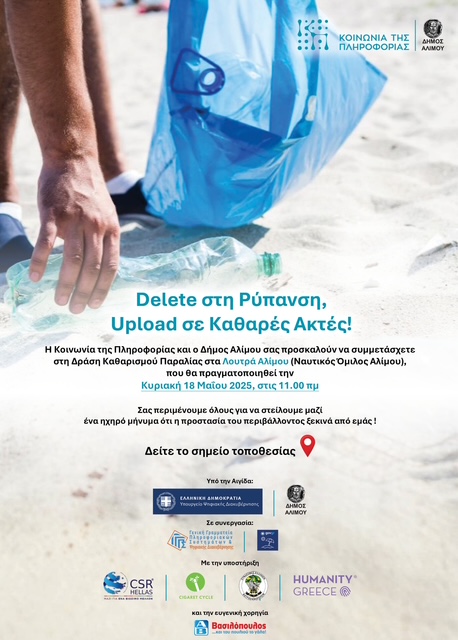 Ο καθαρισμός θα πραγματοποιηθεί την Κυριακή 18 Μαΐου 2025, με ώρα συνάντησης στις 11 το πρωί, στα Λουτρά Αλίμου.