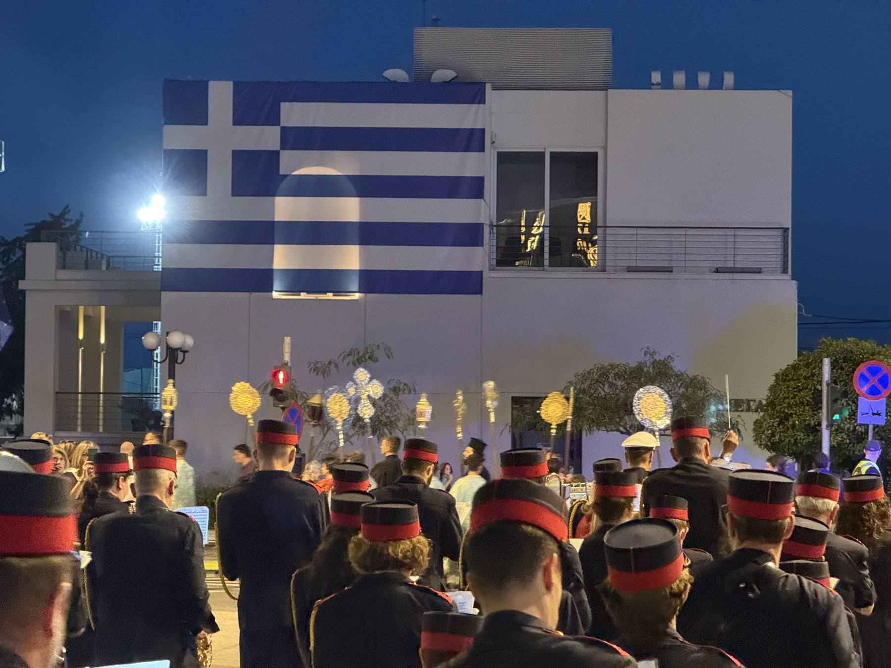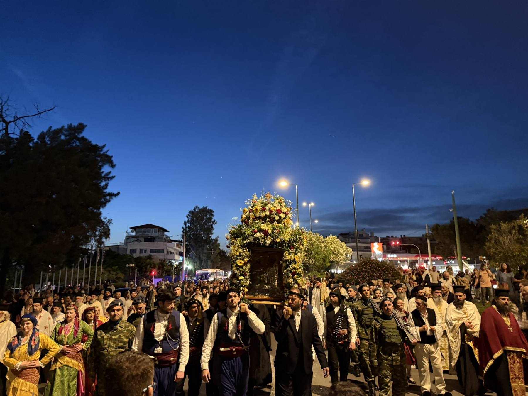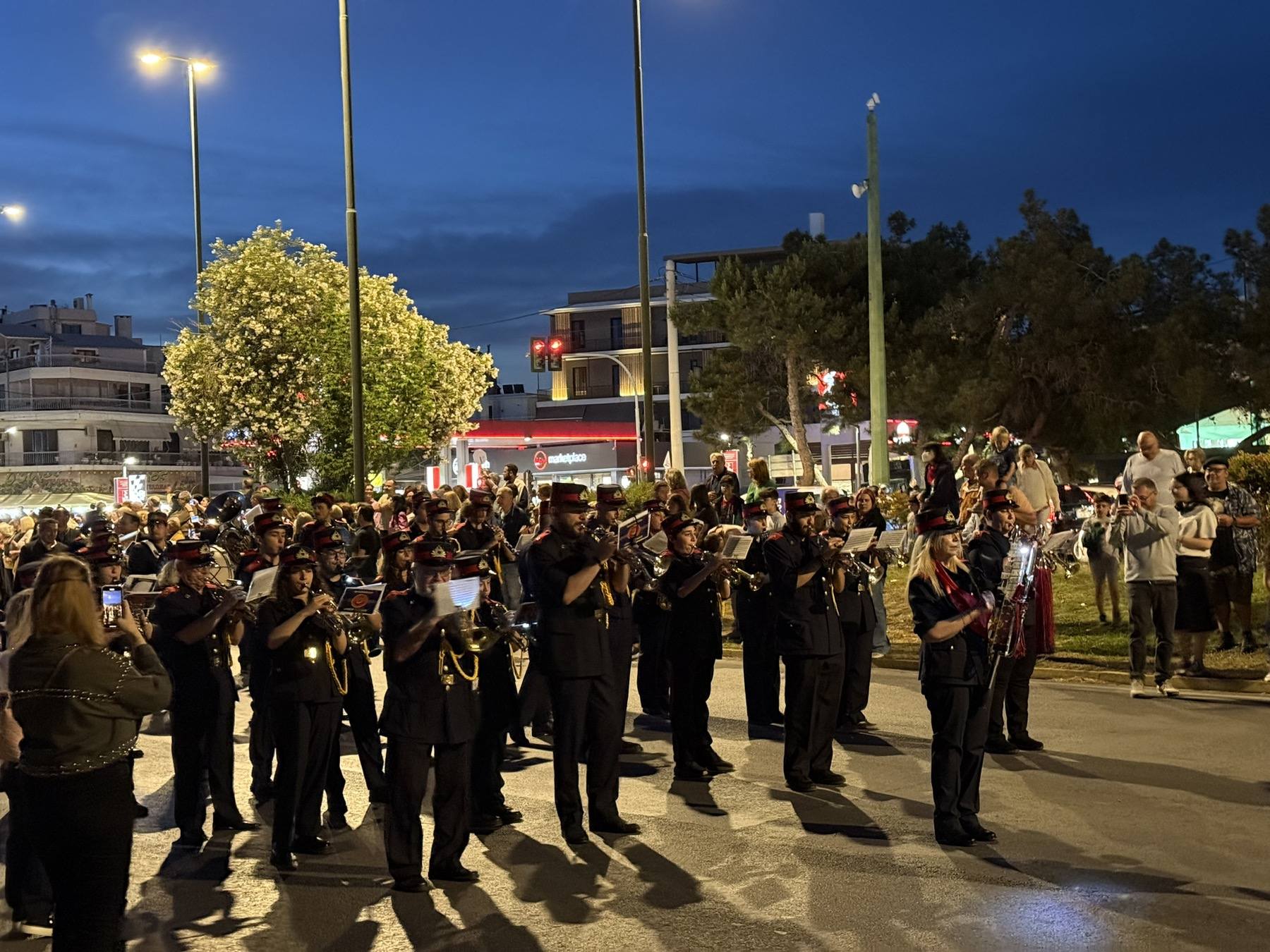 Η Φιλαρμονική του Δήμου Γλυφάδας υπό τη διεύθυνση του μαέστρου Νίκου Καμπιώτη συνόδευσε τη λιτανεία στην παραλιακή λεωφόρο μέχρι την επιστροφή της στον Ιερό Ναό.