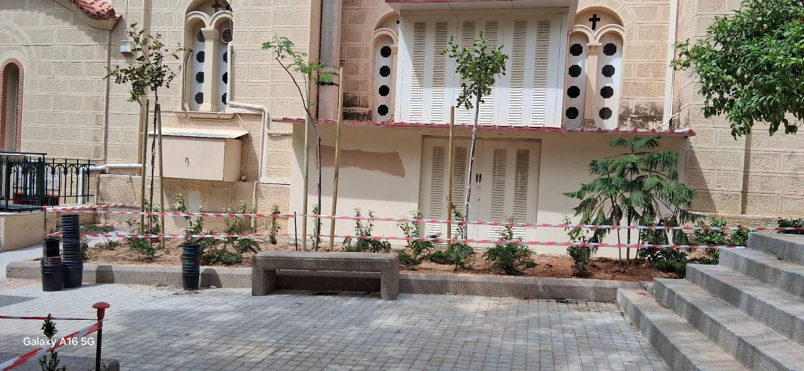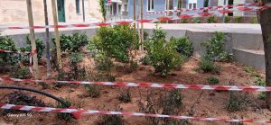Αναλυτικότερα, στα παρτέρια έχουν φυτευτεί δέντρα που με την ανάπτυξή τους θα προσφέρουν σκιά. Επιπλέον, ανθεκτικοί θάμνοι με ποικίλο φύλλωμα καθώς και είδη με πλούσια ανθοφορία σε διαφορετική εποχή, ώστε να υπάρχει χρώμα όλο τον χρόνο.