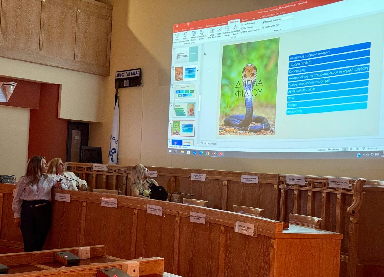 Την εκδήλωση προλόγισε εκ μέρους του Δημάρχου κ. Γιώργου Παπανικολάου η Αντιδήμαρχος Αλληλεγγύης και Μέριμνας, κα Ελένη Καράχου ενώ παρόντες ήταν και η πρόεδρος του Δημοτικού Συμβουλίου, κα Δαφνούλα Χαρίση Μπίλια, ο πρόεδρος του Golf , κος. Δημήτρης Ακρίβος και ο πρόεδρος της ΔΗΜΤΟ, κος. Παναγιώτης Σκαλτσάς.
