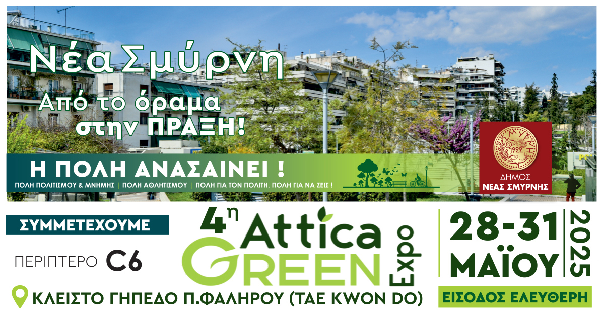 Ανοίγει την Τετάρτη 28 Μαΐου, τις πύλες της στο κλειστό γήπεδο Tae Kwon Do η Attica Green Expo, η μεγαλύτερη συνάντηση Οικολογίας στη χώρα. O Δήμος Νέας Σμύρνης συμμετέχει ενεργά με δικό του περίπτερο και παρουσία στα σημαντικότερα θεματικά πάνελ.