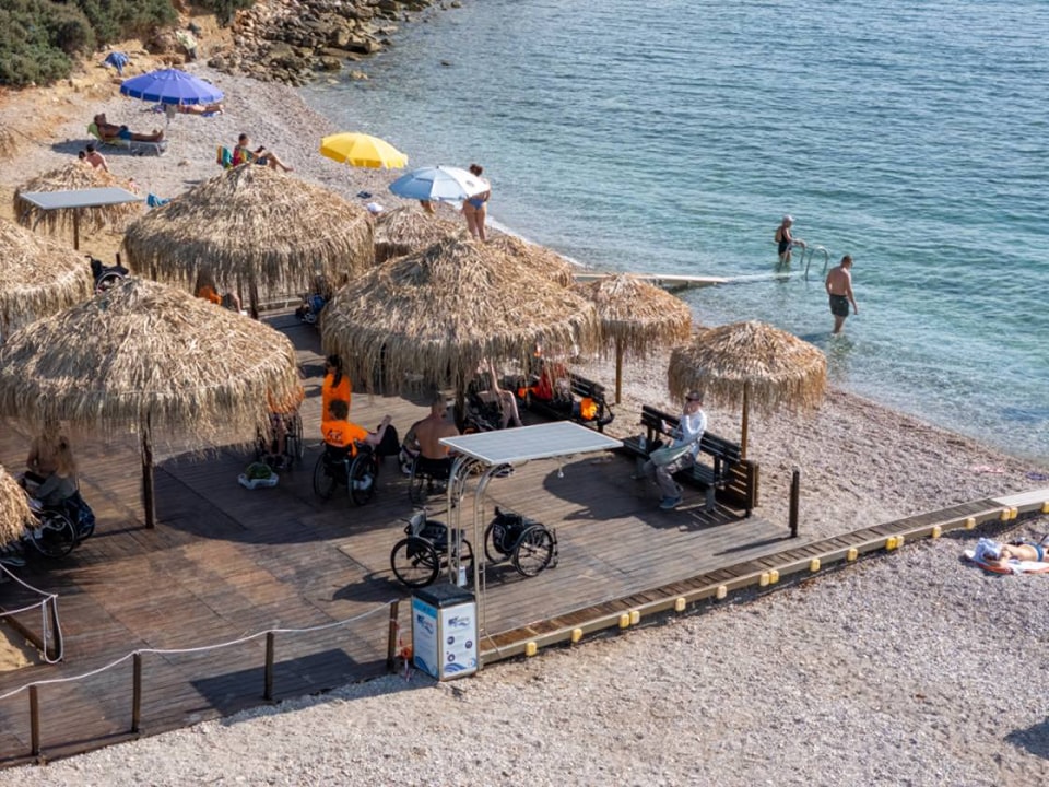Η πρότυπη εγκατάσταση με τα δύο ειδικά τηλεχειριζόμενα αμαξίδια για την απρόσκοπτη πρόσβαση των ΑμεΑ στη θάλασσα, λειτουργεί υποδειγματικά στην παραλία Γλυφάδας, η οποία έχει αναδειχθεί σε πρότυπο προσβάσιμης παραλίας για Άτομα με Αναπηρία.