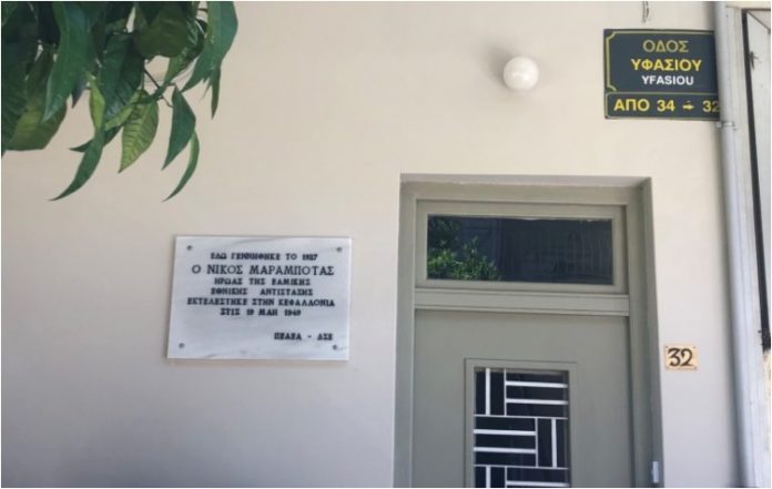 Στη συνέχεια οι παρευρισκόμενοι προχώρησαν ως το σπίτι του Νίκου Μαραμπότα, όπου και έγιναν τα αποκαλυπτήρια της πλάκας προς τιμήν του. Η εκδήλωση έκλεισε με κατάθεση λουλουδιών από τις Οργανώσεις του ΚΚΕ και της ΚΝΕ της περιοχής, της «Λαϊκής Συσπείρωσης» Ζωγράφου και του Παραρτήματος της ΠΕΑΕΑ-ΔΣΕ.