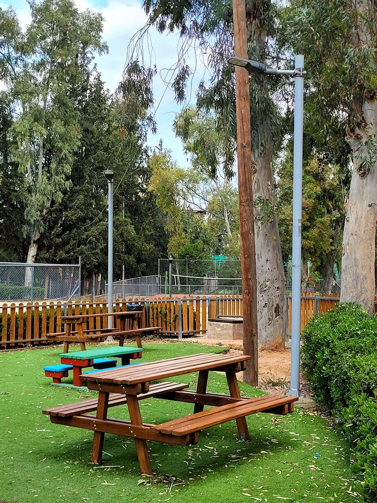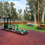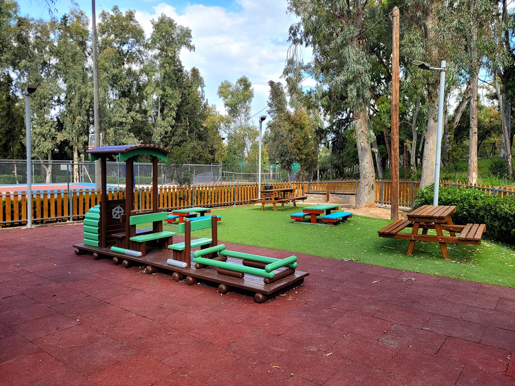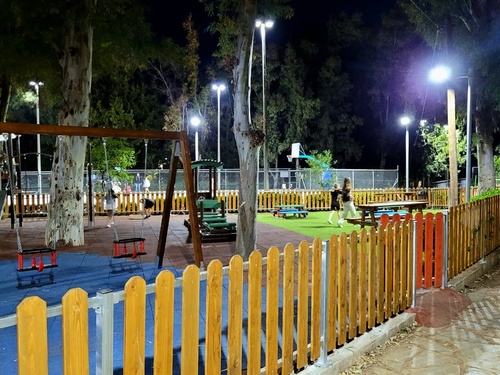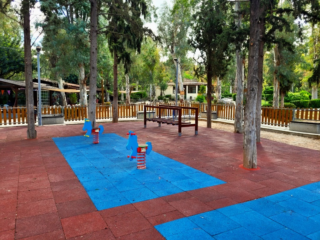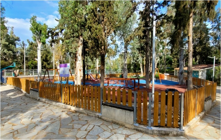 Η παιδική χαρά έχει πιστοποιηθεί και υπολείπεται μόνο η ολοκλήρωση της διαδικασίας έγκρισης από την αρμόδια Επιτροπή του Δήμου Καισαριανής. Στα κενά των δαπέδων θα γίνει φύτευση καθώς και τοποθέτηση φυσικού πετρώματος.