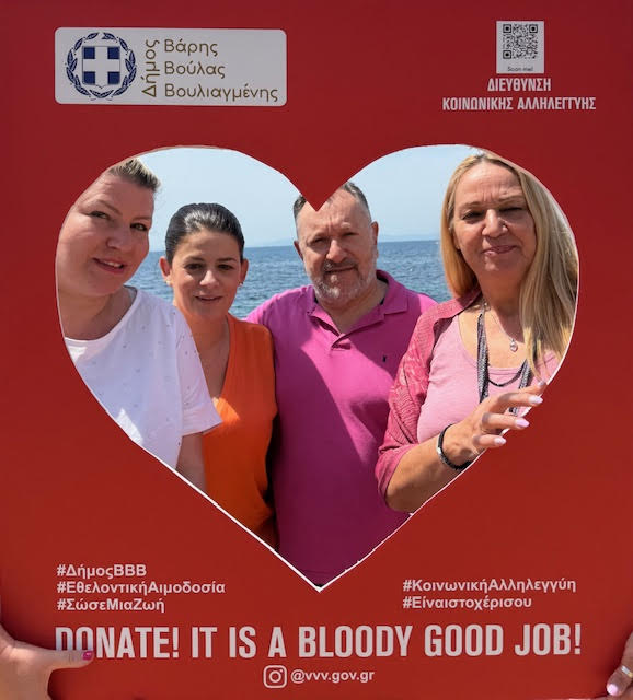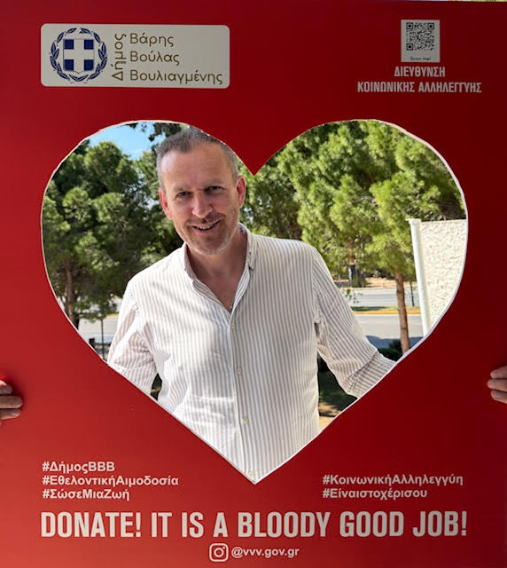 Ο Δήμος Βάρης Βούλας Βουλιαγμένης μέσα από μια ζωντανή, αισιόδοξη και ανθρώπινη παρουσία στους δρόμους της πόλης προχώρησε σε μία δράση ευαισθητοποίησης ζωτικής σημασίας. Εθελοντές και υπάλληλοι του Δήμου ένωσαν τις δυνάμεις τους για να στείλουν ένα ηχηρό μήνυμα: Δώσε αίμα. Δώσε ζωή!