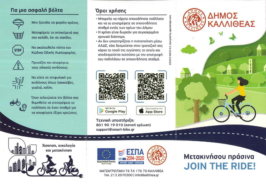 Η δράση πραγματοποιείται στο πλαίσιο της πράξης «Βιώσιμη μικροκινητικότητα μέσω συστήματος κοινόχρηστων ποδηλάτων σε Δήμους της Χώρας (Δήμοι Μητροπολιτικών Κέντρων)», με τη συγχρηματοδότηση της Ελλάδας και της Ευρωπαϊκής Ένωσης (Ταμείο Συνοχής).