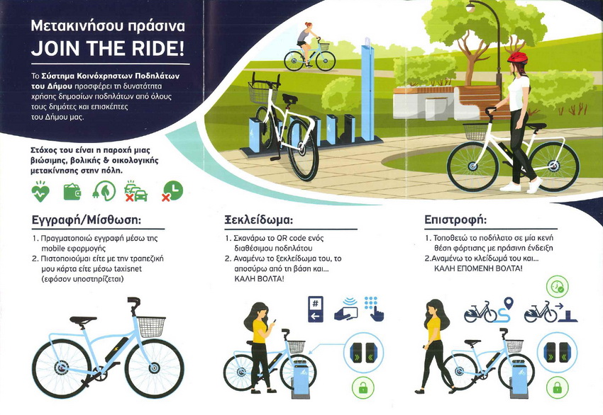O Δήμος παρακαλεί τους χρήστες των Κοινόχρηστων Ποδηλάτων να φορούν κράνος για την ασφάλειά τους, όπως και τους οδηγούς αυτοκινήτων και μηχανών να προσέχουν στην πόλη τους χρήστες του συστήματος των κοινόχρηστων ποδηλάτων.