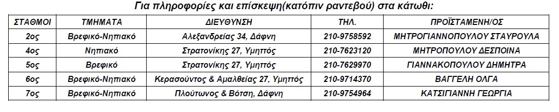 Δείτε παρακάτω την λίστα παιδικών – βρεφονηπιακών σταθμών: