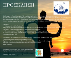 Η εκδήλωση αποτελεί πρωτοβουλία του Δημάρχου Παλαιού Φαλήρου Γιάννη Φωστηρόπουλου και της Μαρίας Ζάγκα, ψυχολόγος-ψυχοθεραπεύτρια, πρ. Δημοτική Σύμβουλος και πρ. πρόεδρος ΔΕΠΙΣ του Δήμου Παλαιού Φαλήρου, πρόεδρος Βενζινοπωλών Αττικής.