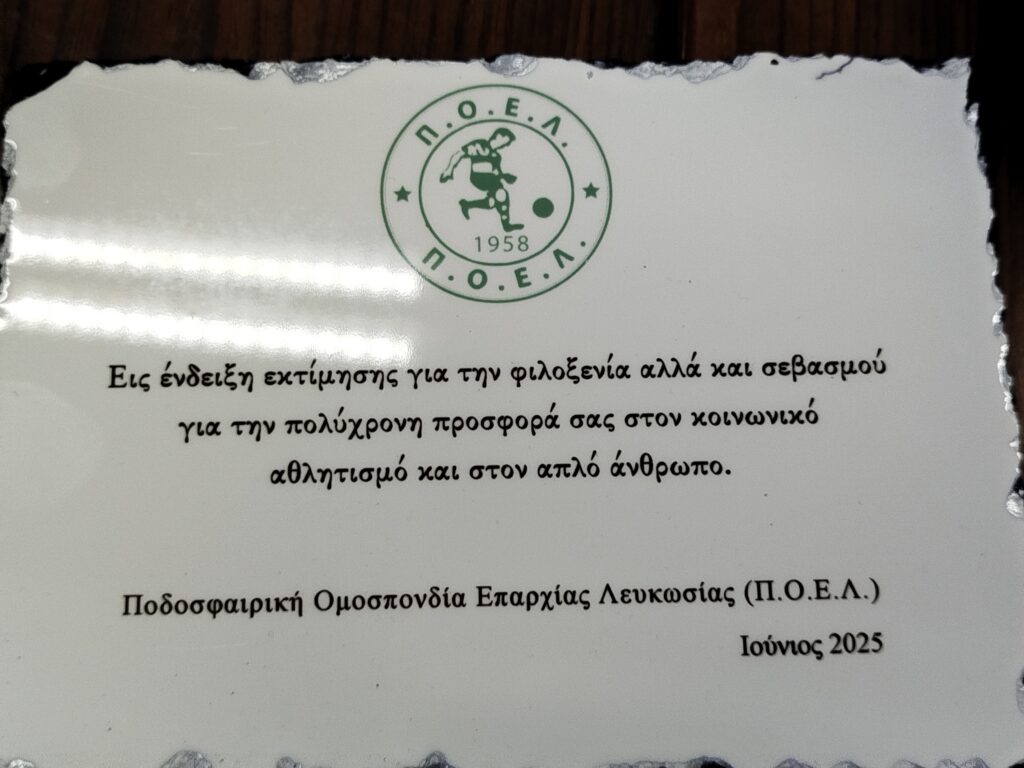 Στην Καισαριανή βρέθηκε αντιπροσωπεία της Ποδοσφαιρικής Ομοσπονδίας Επαρχίας Λευκωσίας, στο πλαίσιο επίσκεψης που πραγματοποιεί στη χώρα μας.