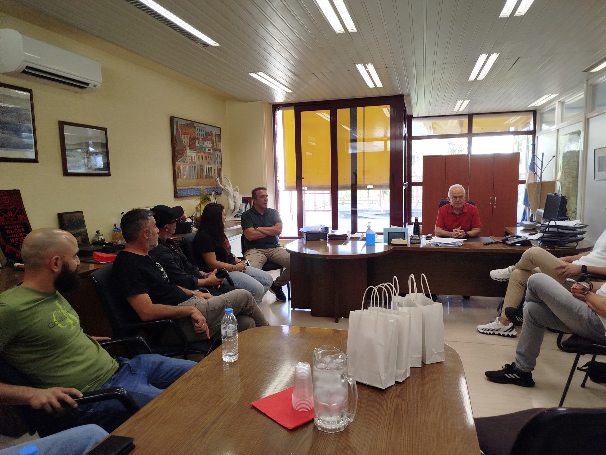 Κατά τη συνάντηση αντάλλαξαν εμπειρίες και απόψεις σχετικά με την ανάπτυξη του ερασιτεχνικού αθλητισμού και τα προβλήματα που αντιμετωπίζουν τα ερασιτεχνικά σωματεία.