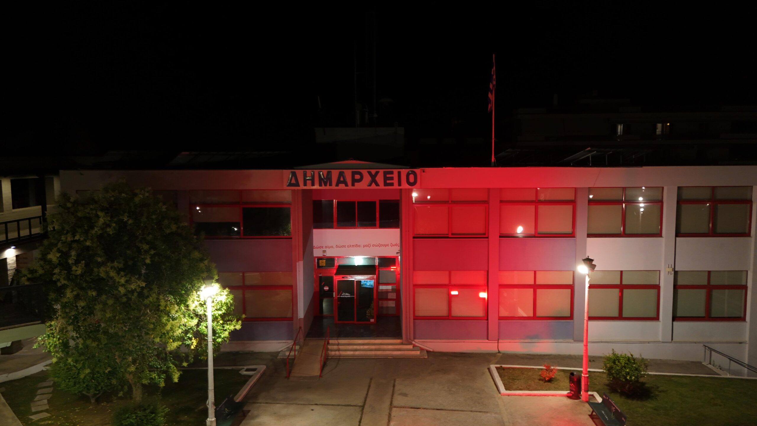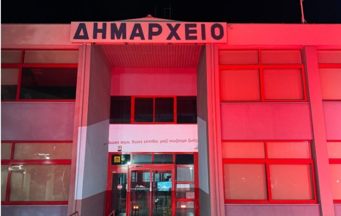 Ως συμβολική συμμετοχή στον πανελλαδικό εορτασμό της 14ης Ιουνίου, ανήμερα, το βράδυ του Σαββάτου, το Δημαρχείο της πόλης μας φωταγωγήθηκε σε κόκκινο χρώμα, μεταφέροντας ένα δυνατό μήνυμα: «Δώσε αίμα, δώσε ελπίδα – Μαζί σώζουμε ζωές».