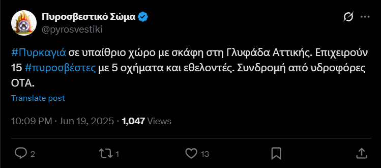 Πυρκαγιά έχει ξεσπάσει σε υπαίθριο χώρο με σκάφη επί της Αλεξάνδρου Παναγούλη στη Γλυφάδα Αττικής.