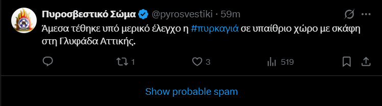 UPDATE: Υπό πλήρη έλεγχο τέθηκε η φωτιά που ξέσπασε το βράδυ της Πέμπτης σε υπαίθριο χώρο με σκάφη, επί της Αλεξάνδρου Παναγούλη, στη Γλυφάδα.