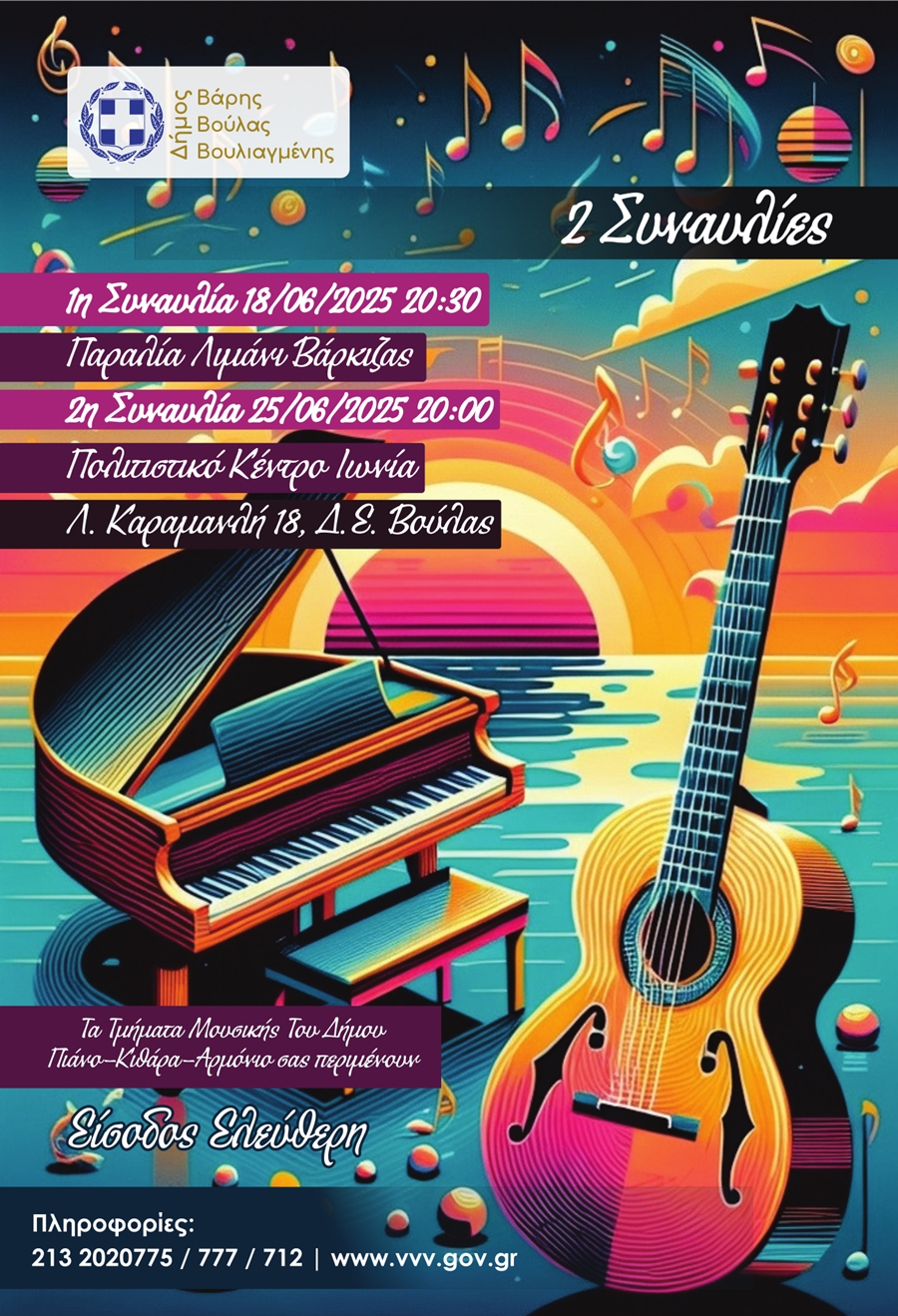 Τα τμήματα μουσικής του Δήμου Βάρης Βούλας Βουλιαγμένης που περιλαμβάνουν πιάνο, κιθάρα και αρμόνιο διοργανώνουν αυτές τις συναυλίες για να μοιραστούν με το κοινό την πρόοδό τους στη μουσική.