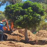 Η αρχή έγινε με μια πανέμορφη Lagunaria patersonia ενώ τα συνεργεία συνεχίζουν τις εκσκαφές για την τοποθέτηση και των υπόλοιπων δέντρων.