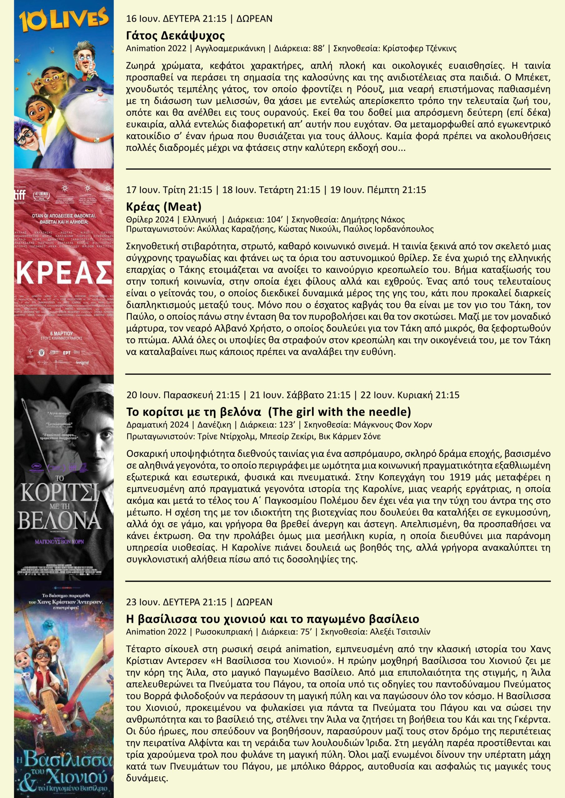 *Η είσοδος στις παιδικές ταινίες γίνεται αποκλειστικά με ηλεκτρονικό εισιτήριο