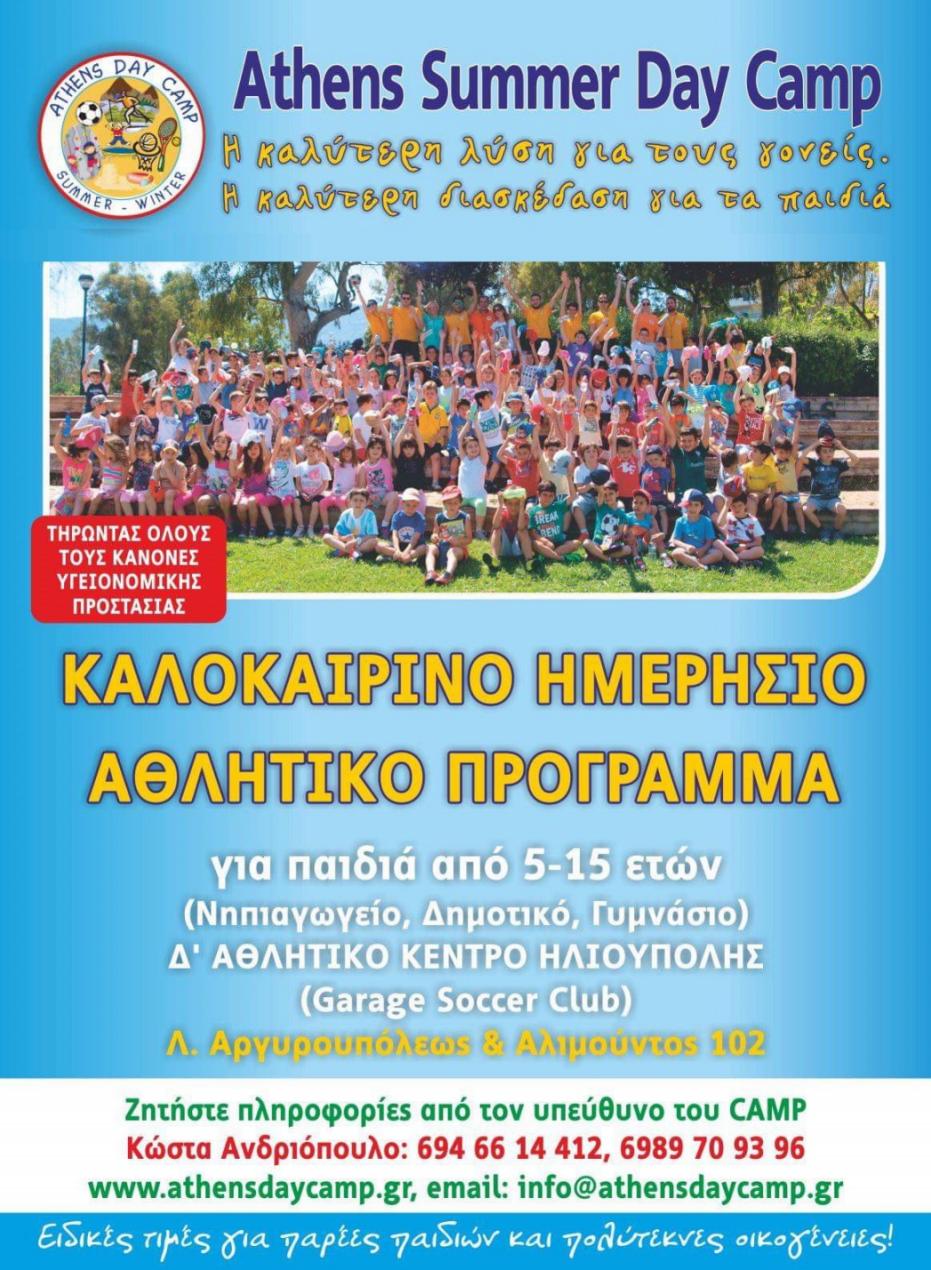 To Athens Day Camp είναι ένα καλοκαιρινό ημερήσιο πρόγραμμα απασχόλησης παιδιών με παιχνίδια μέσω αθλητικών δραστηριοτήτων & εκδρομών.