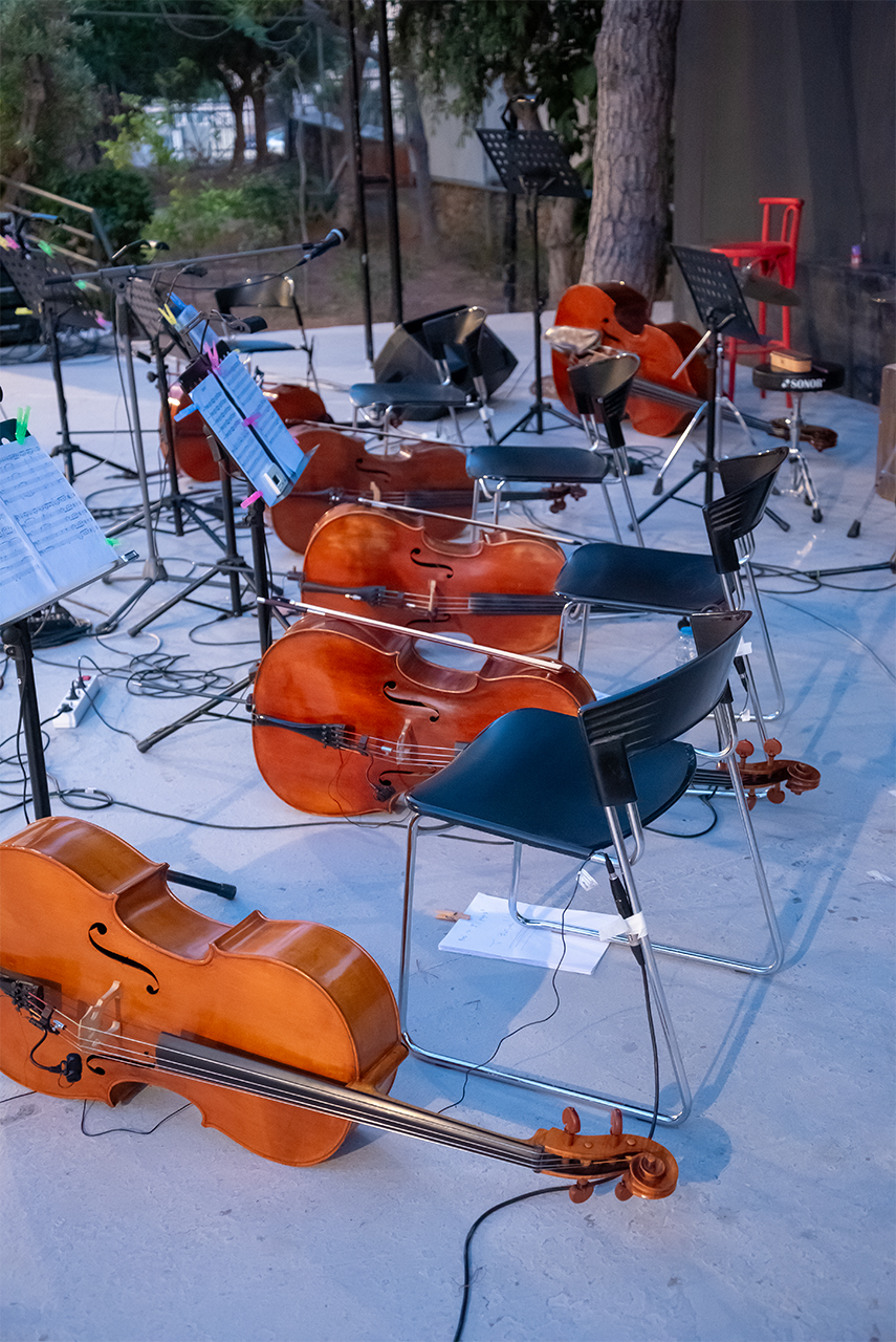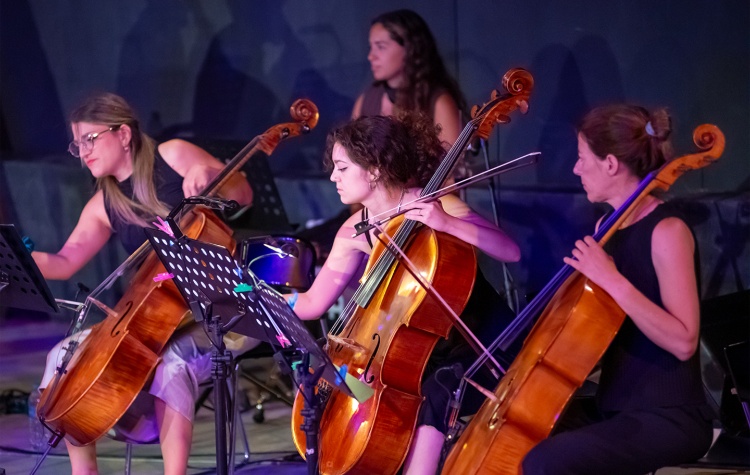 Πέντε βιολοντσέλα, ένα κοντραμπάσο και μερικά κρουστά άφησαν το επίσημο ρεπερτόριο τους και ανέδειξαν τις μοναδικές δυνατότητες του βιολοντσέλου μέσα από ένα εντελώς απρόσμενο, αλλά και απρόσμενα εκρηκτικό ταξίδι στους διαδρόμους του ελληνικού τραγουδιού, σε μία από τις εκδηλώσεις του «Ζωγράφου Summer Festival 2025».