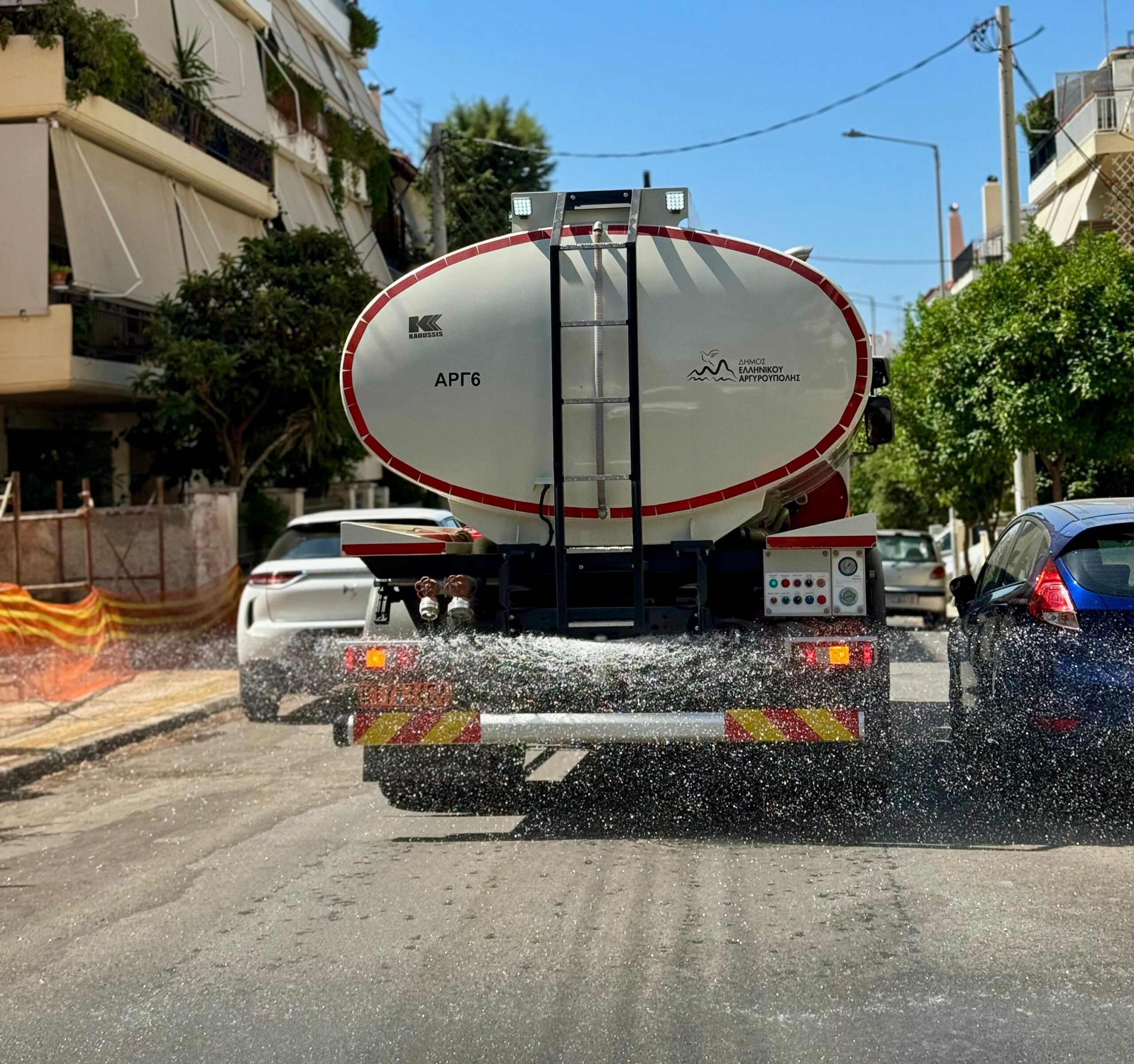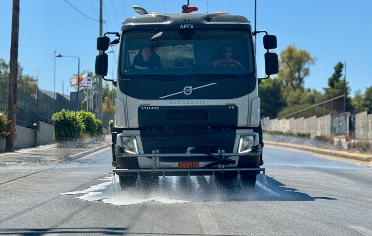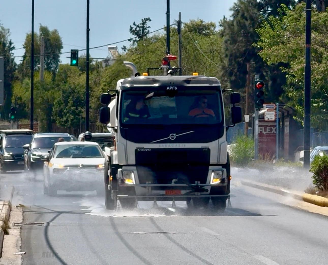 Στην προσπάθεια να αντιμετωπιστεί το κύμα καύσωνα με πράξεις, ο Δήμος Ελληνικού – Αργυρούπολης υλοποίησε μια πρωτότυπη και ουσιαστική παρέμβαση, καταβρέχοντας δρόμους και πεζοδρόμια σε όλη την πόλη, αξιοποιώντας νερό από τις δημοτικές γεωτρήσεις.