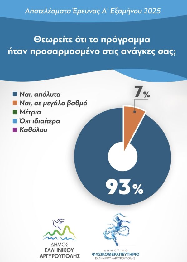 - Το 93% θεώρησε ότι το πρόγραμμα ήταν απόλυτα προσαρμοσμένο στις ανάγκες του.